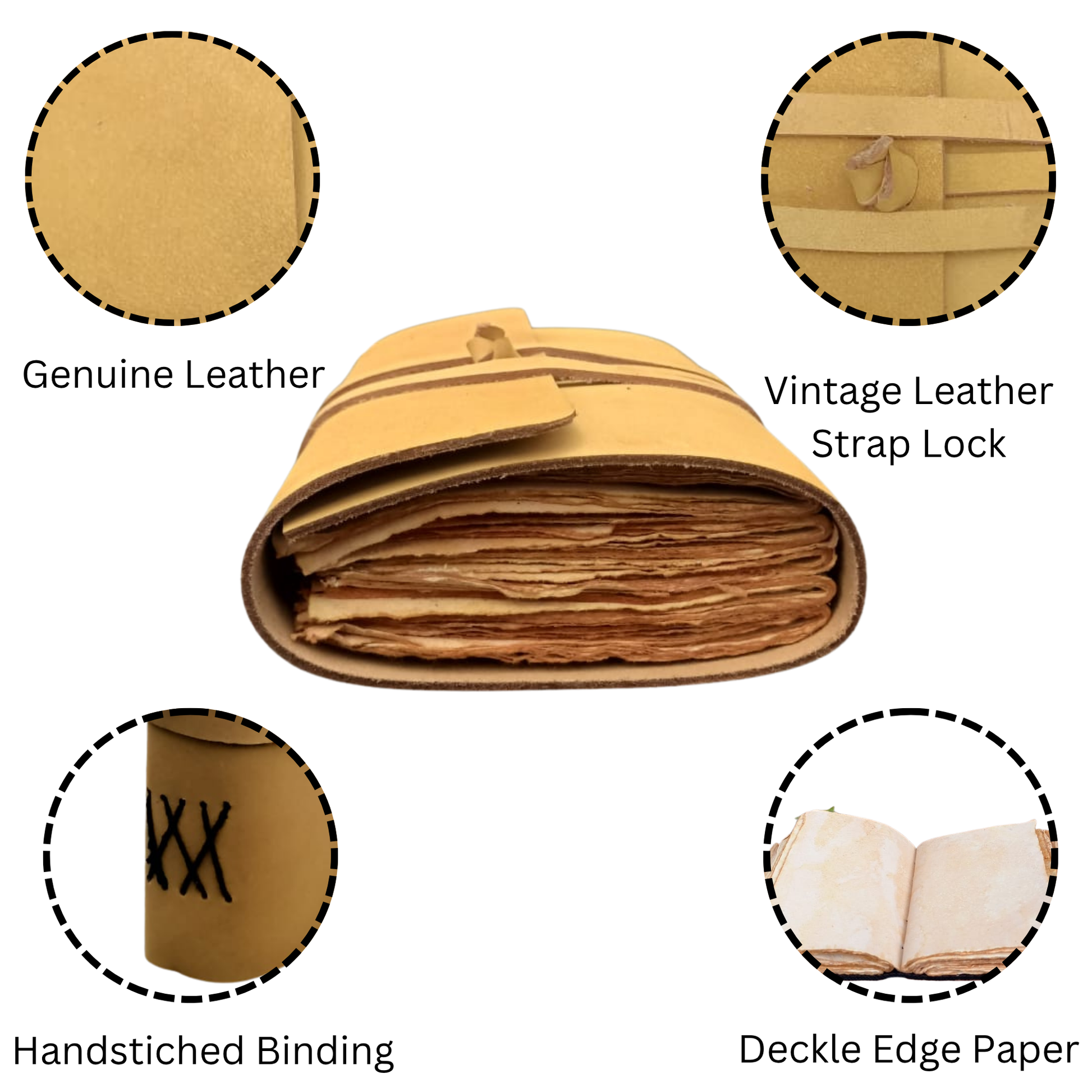 - Why Choose Us? Unike other leather journal spellbook made with low quality materials, low durability. Our Brand Spellbook are handcrafted by skilled artisan with premium quality top grain leather, antiqe deckle edge paper, 125 Gsm Paper, We only use top quaility materials to make the Spellbook.