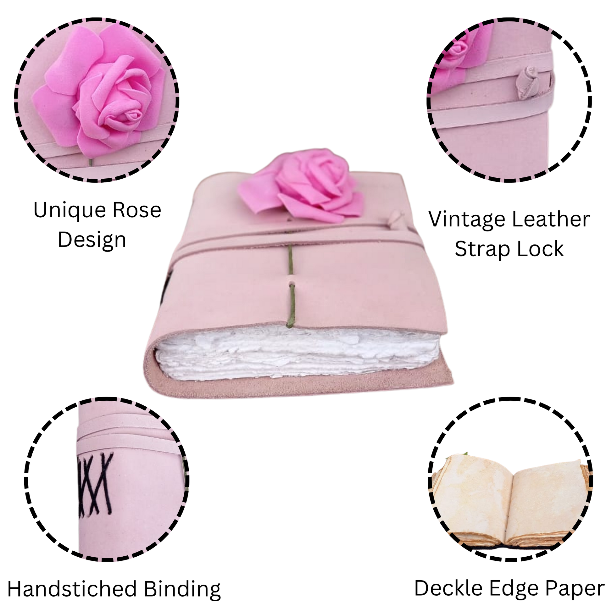 Elegant Rose Leather Journal Floral Notebook Spiritual Growth Mystical Blossoming Golden Black Rose Diary for Women Girls power Handmade Empowerment journal Self love Notebook for Writing and Gifting 5x7 inches for teens