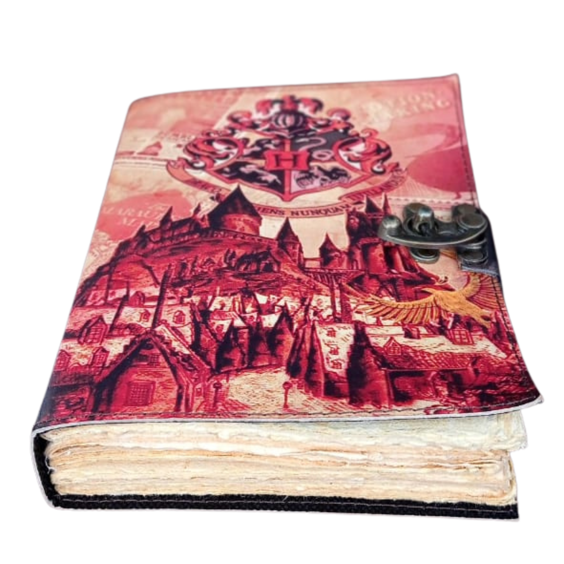 Leather Journal Spell book 5x7 Inch | Harry Potter Inspired Vintage Notebook | Hogwarts House Crest | 200 Deckle Edge Pages | Leather Diary for Gifting & Collectors