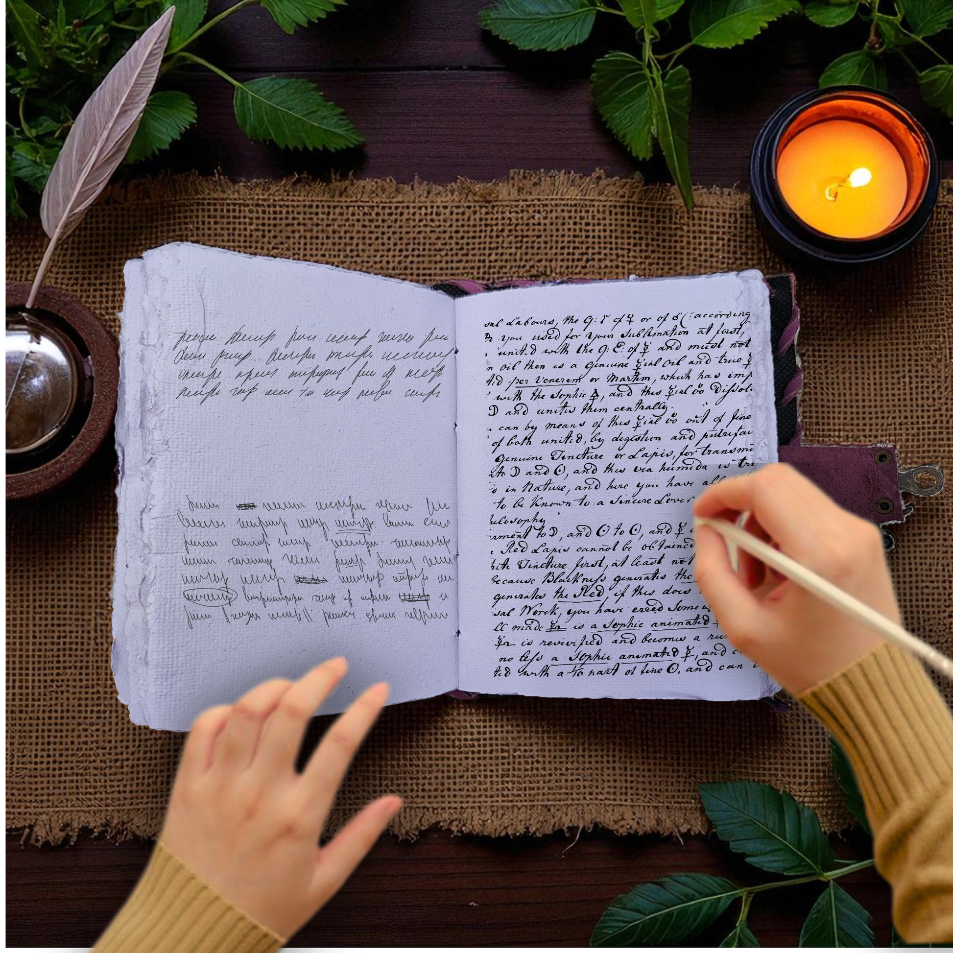 - Why Choose Us? Unike other leather journal spellbook made with low quality materials, low durability. Our Brand Spellbook are handcrafted by skilled artisan with premium quality top grain leather, antiqe deckle edge paper, 125 Gsm Paper, We only use top quaility materials to make the Spellbook.