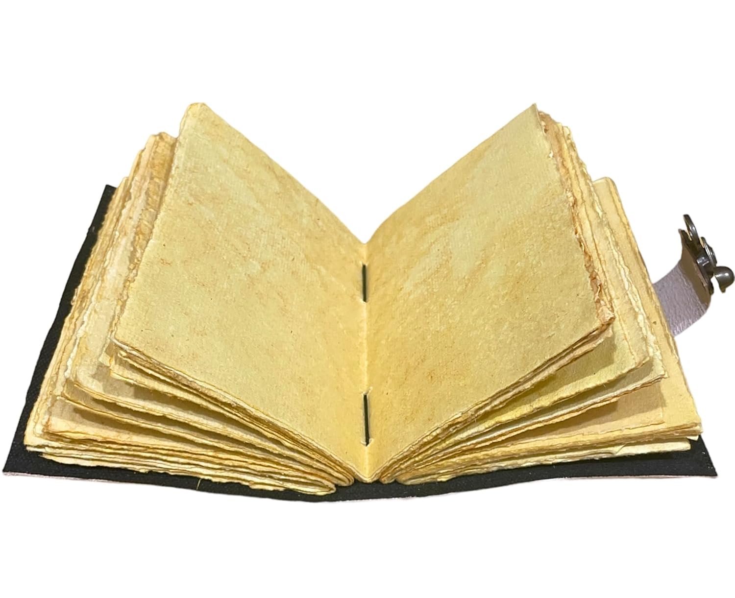 - Vintage Lock And Sturdy Binding: The vintage clasp lock will keep all your valuable writings, thoughts, sketch looked inside safely. Sturdy hand stiched cotton binding threads into the journal to make sure no paper comes out from the spellbook.