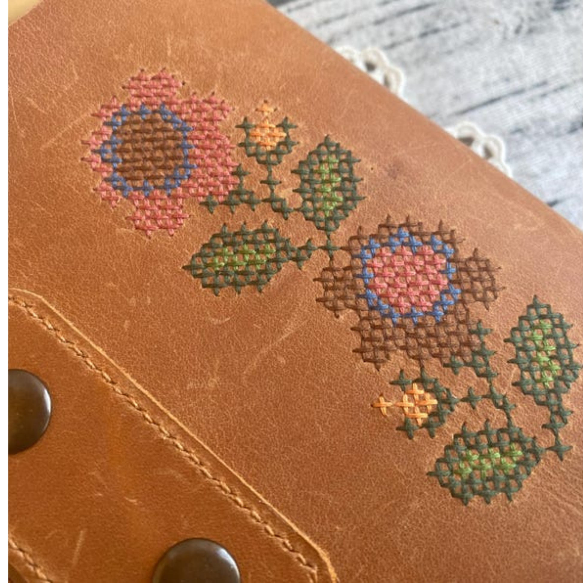 Cognac Leather Journal: Embroidered A6 Travel Sketchbook