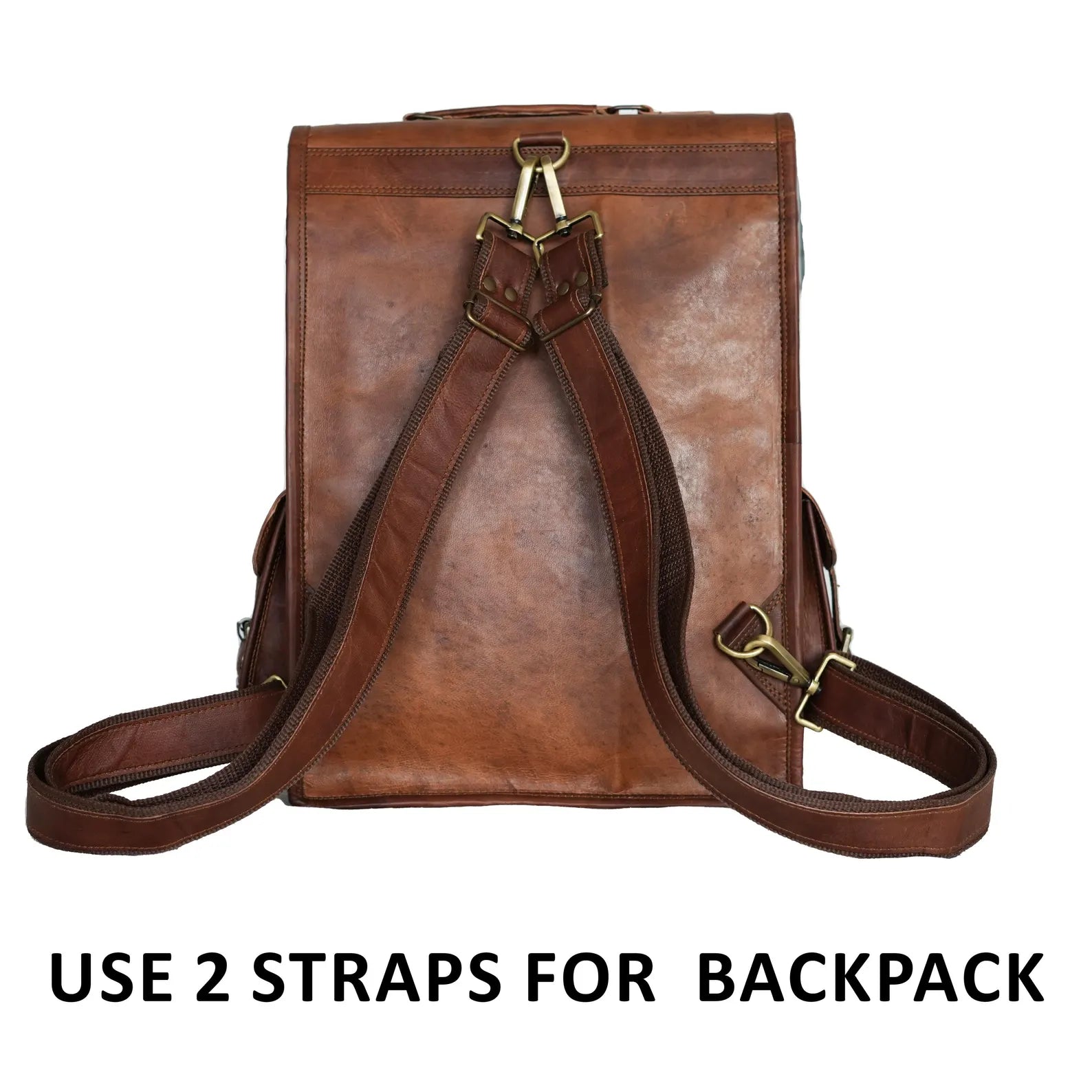 Handcrafted Goat Leather Messenger Bag: Convertible Backpack Briefcase