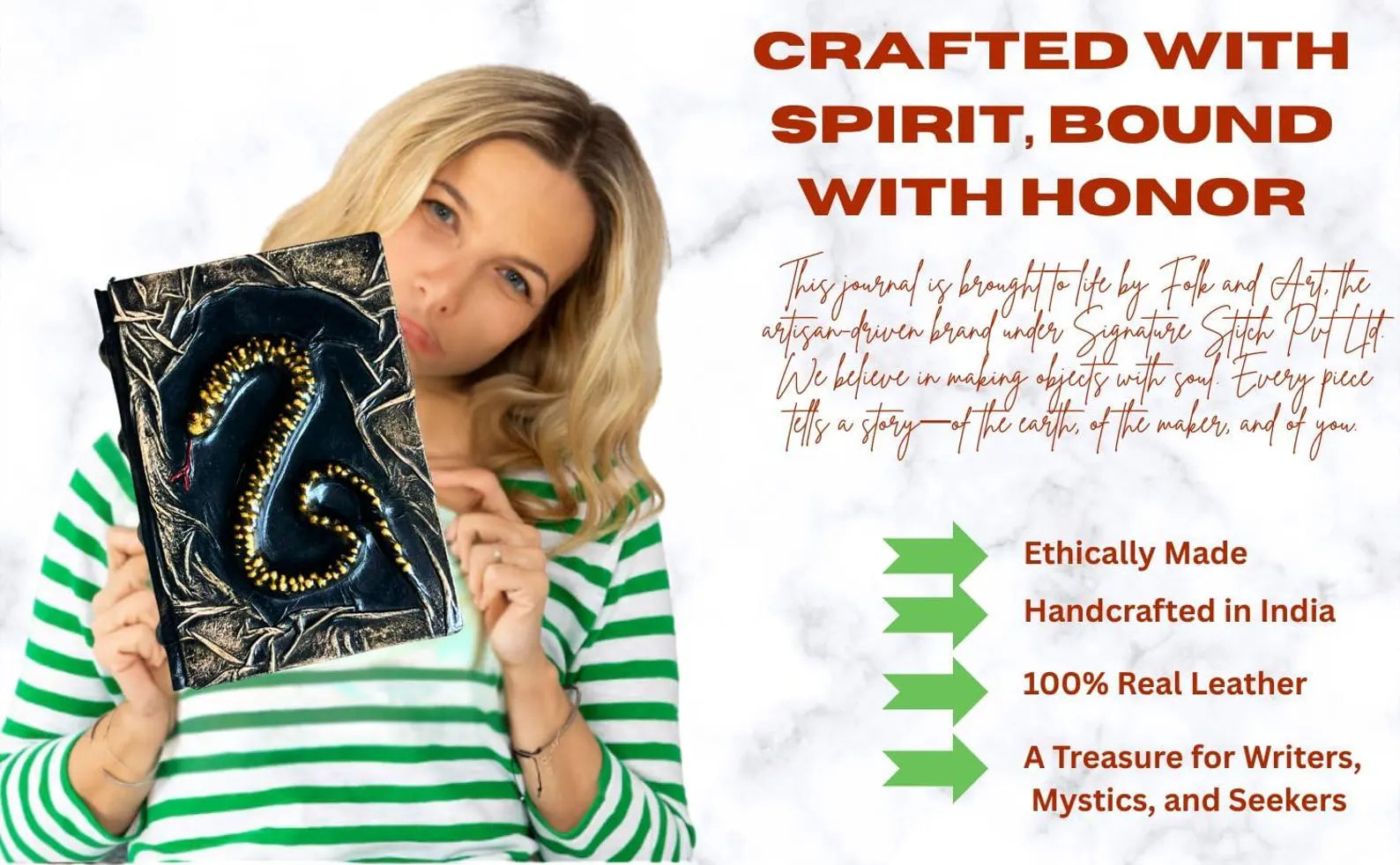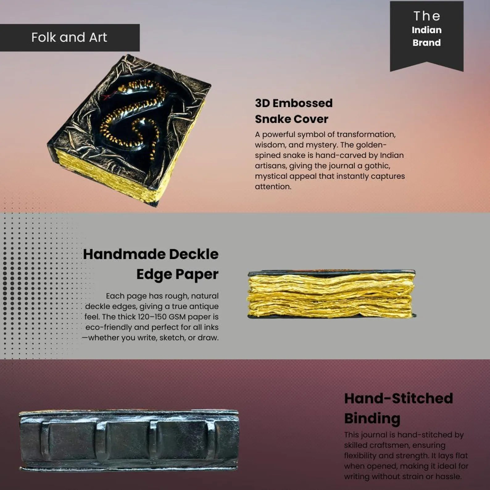 Handmade Leather Journal – Vintage Leather-Bound Notebook with 200 Deckle Edge Pages – Antique Travel Diary Gift for Men & Women,Snakefire
