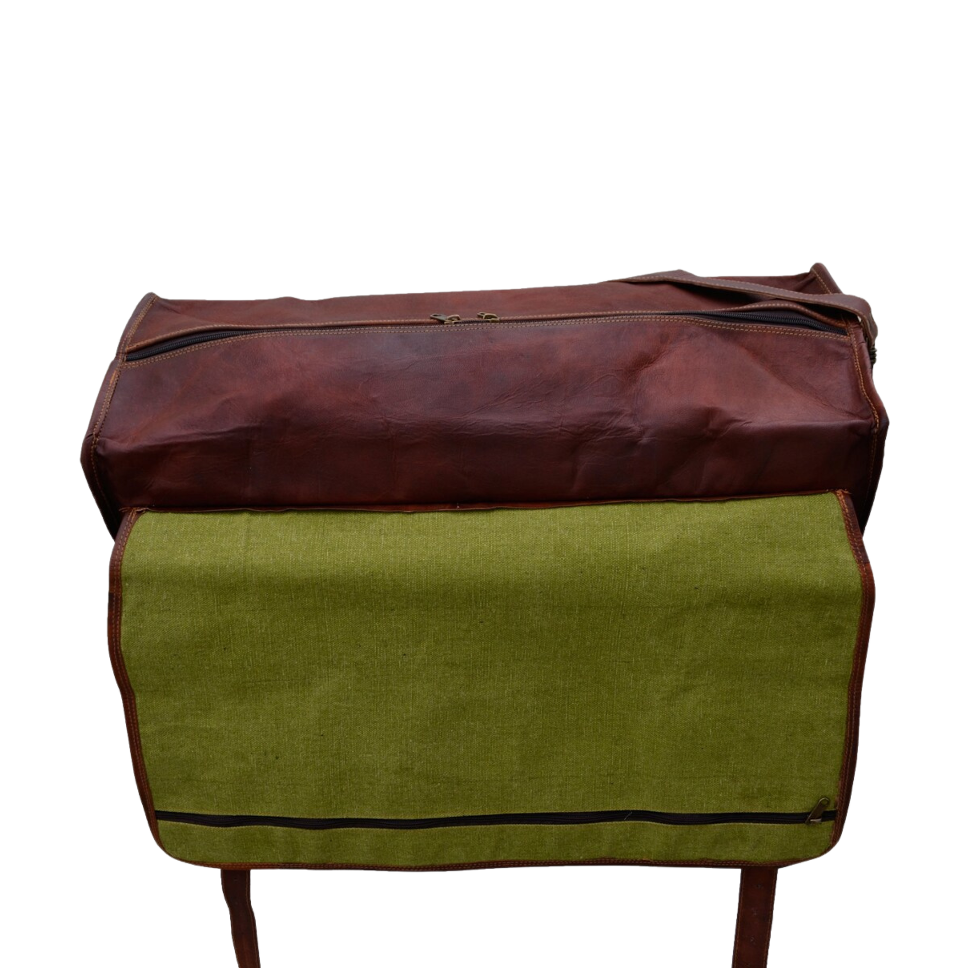 Superior top grain goat leather, The inner lining of the bag is sturdy canvas lining. Has high quality brass polished buckles.