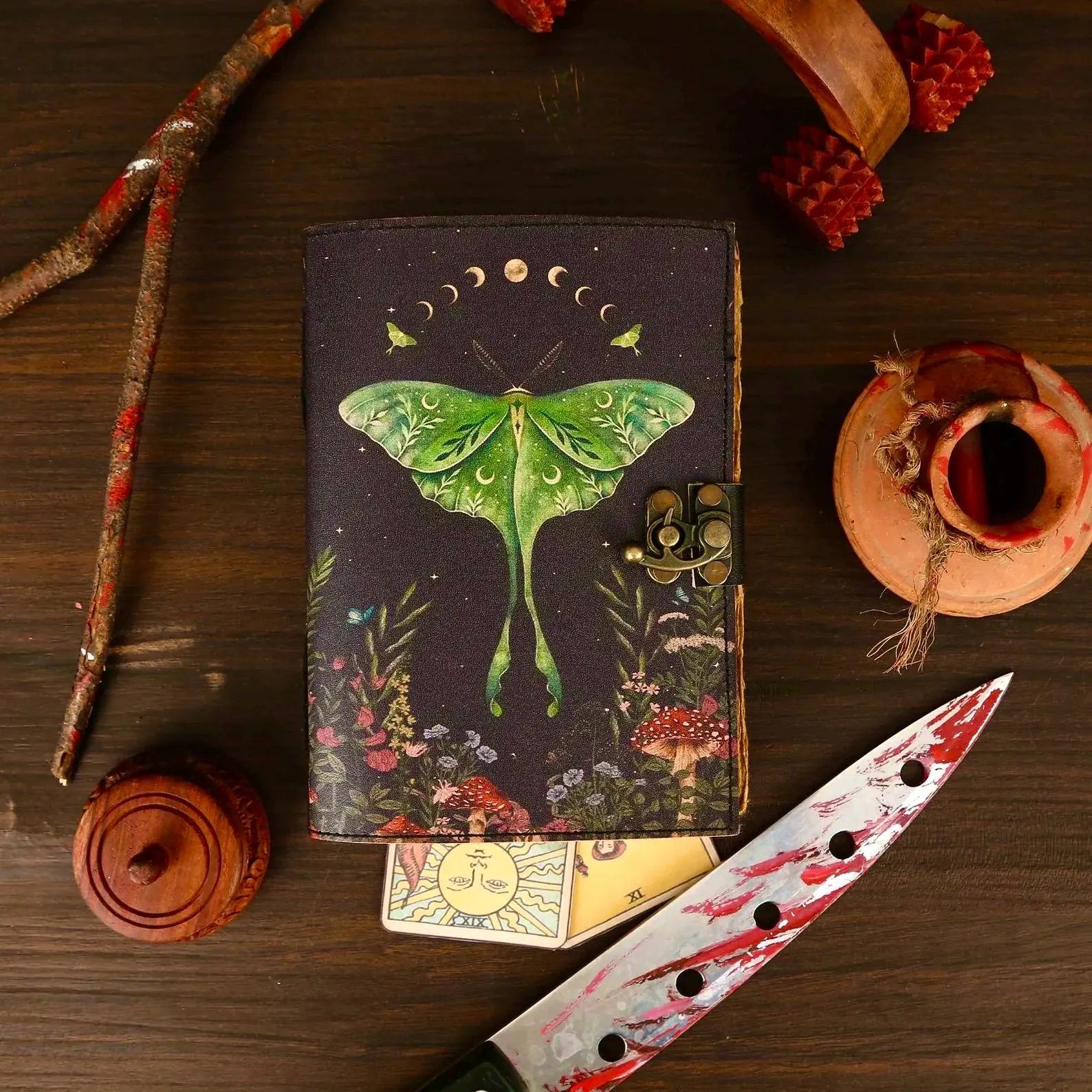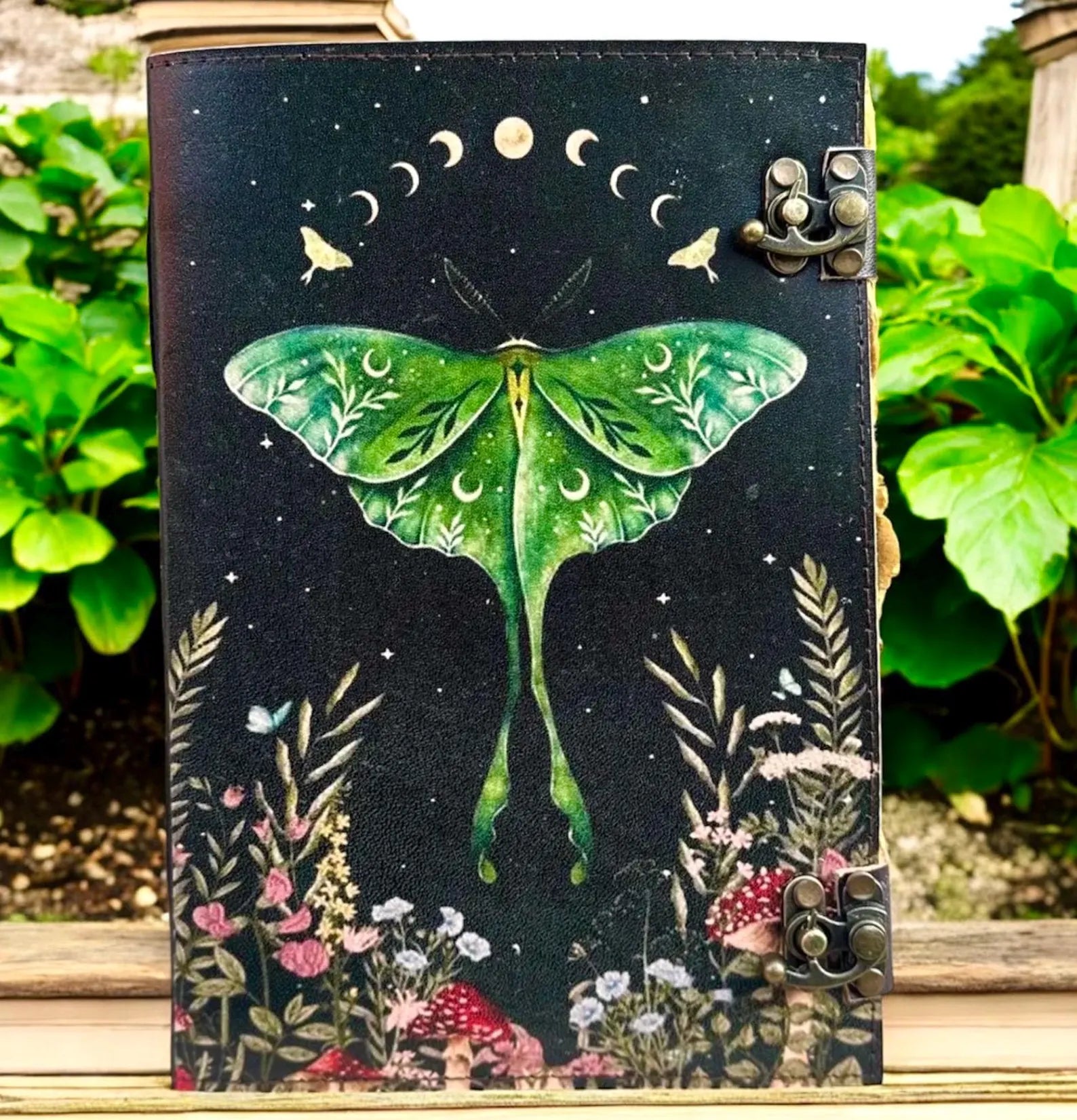 The Moth Leather Grimoire – Witchcraft Book of Shadows, 400 Pages Celestial Spellbook, Gothic Wiccan Pagan Journal, Witchy Magic Diary Gift