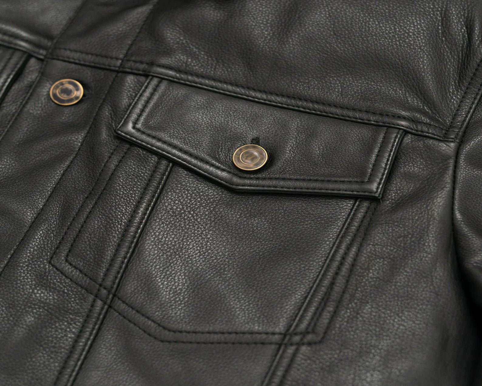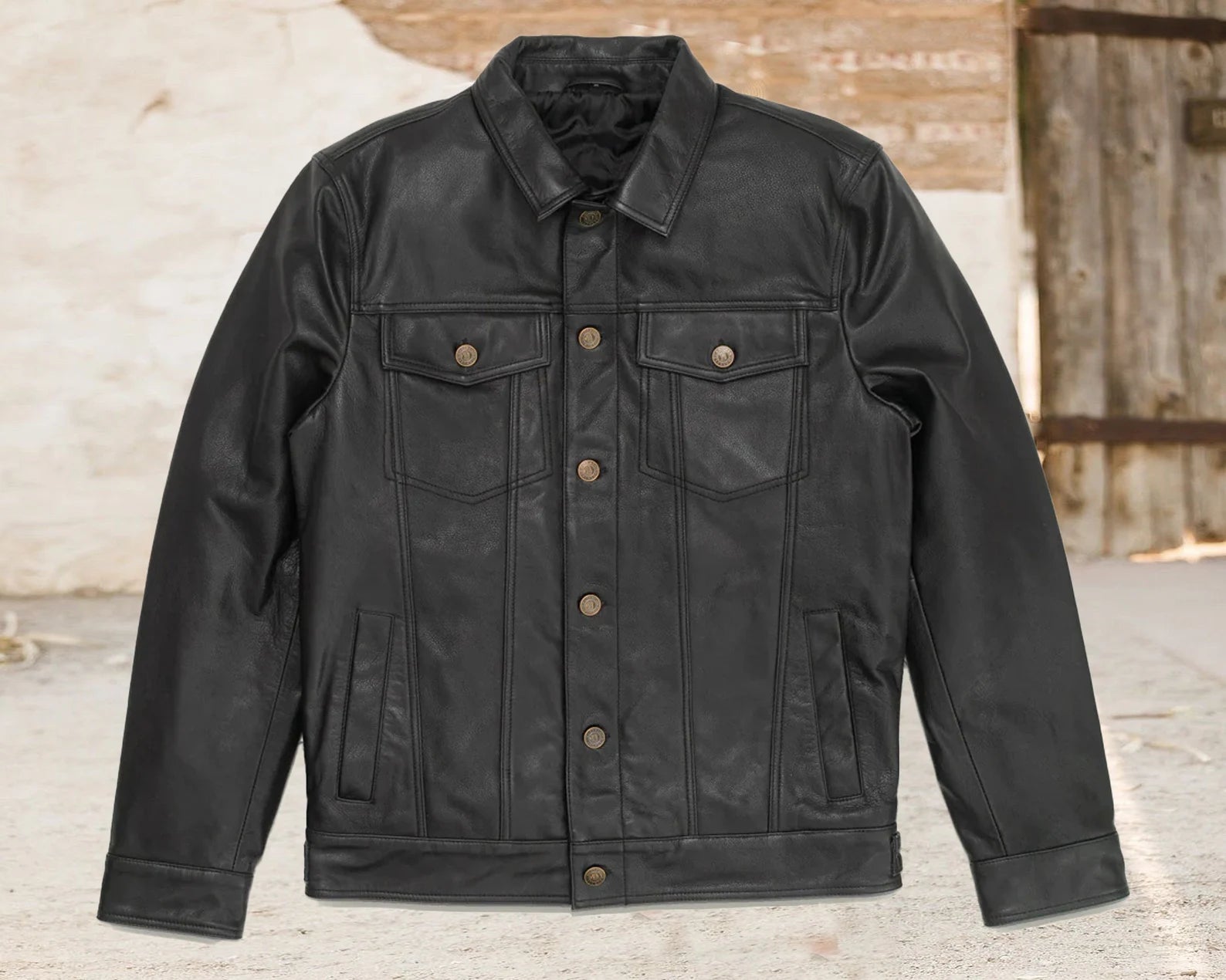 Men's Black Lambskin Leather Jacket: Button-Down Shirt Style